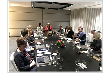 Mr David Roberts CBE, Chair, and Mr Joe Garner, CEO, Nationwide Building Society, co-hosted a dinner for 12 Mentees and Alumnae of the FTSE 100® Cross-Company Mentoring Executive Programme in Threadneedle Street, February 2019. Topics included a lively discussion about social exclusion.
